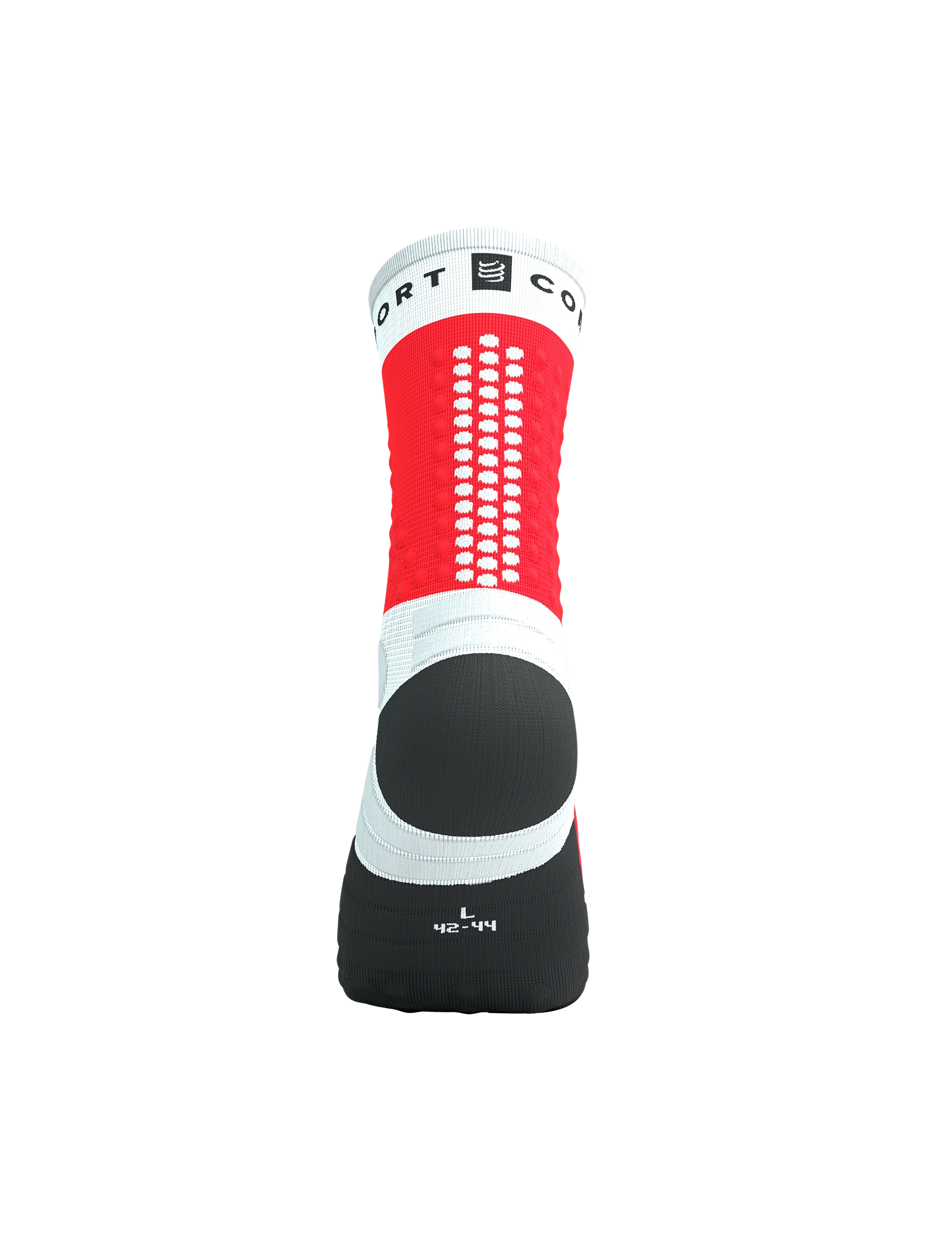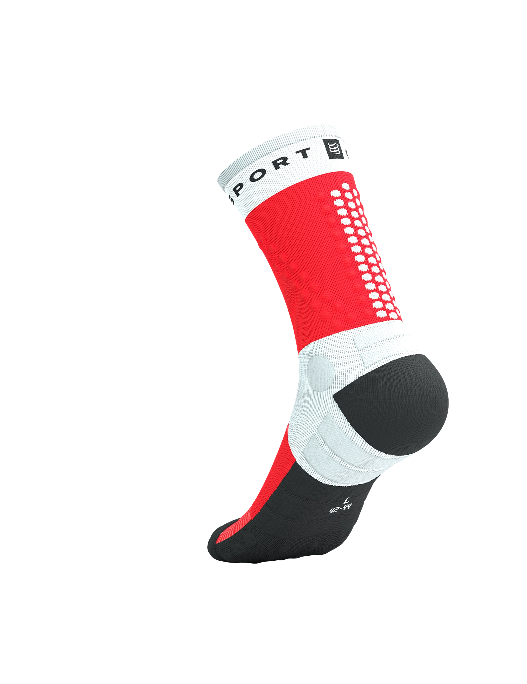 Stability. Cushioning. Comfort. The Ultra Trail Sock 2.0 packs three key qualities into a brand new design to get you to the finish line of your next ultra-marathon. Designed to withstand the toughest, roughest terrain of the world’s biggest trail running races, this high-tech sock provides a reinforced, padded terry toe box to protect toes and nails on relentless descents. The terry extends underfoot and up the ankle, with thicker bands to further absorbs impact and pressure from your shoes as you run. Medical-grade compression in the 360° arch support boosts blood flow to delay fatigue, while also preventing the material from twisting and causing blisters. A brand-new X-strap has been specifically developed for increased stability in rocky terrain, firmly wrapping around your ankle for steadfast support. Working as a duo with the arch support, its targeted compression further enhances micro circulation to keep you running pain-free through the night. The sock would not be complete without signature Compressport dots, strategically placed over the malleolus and up the fibula to protect from flying feet and stones. Two rows of dots at the back of the sock provide added support to the sensitive Achilles tendon. Last but not least, the technical mesh over the upper foot and shaft remains lightweight and breathable, quickly wicking away sweat to deliver the comfort and freshness you need on the most demanding races of your life. Take your cues from our pros and choose this crew-length trail running sock to conquer your next mountain challenge.